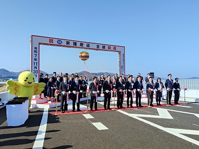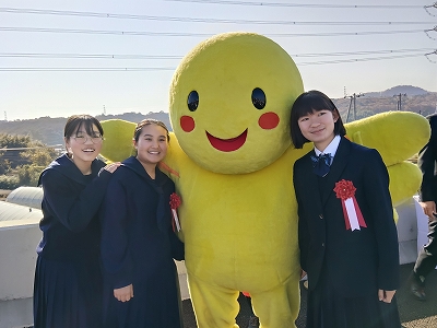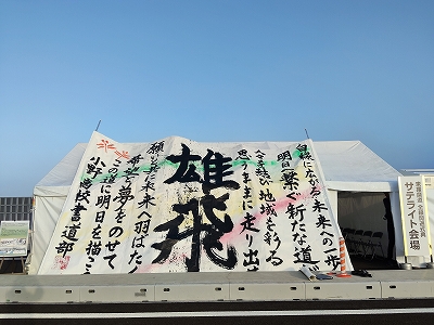 11月30日(日)東播磨道全線開通式典の司会を担当しました。会場には、9月に行われた「東播磨道開通記念ウォーク」にて書道部が披露した書道パフォ―マンスの作品が飾られており、それを見て少し緊張がほぐれたように思います。