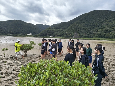 奄美大島生態学実習2日目の日程を終了しました 奄美大島生態学実習2日目は「マングローブ林実習」「漂流ゴミ調査」「モダマ生息地実習」「アマミノクロウサギ生息域調査」を行いました。ガイドの指導のもとで、充実した実習を行うことができました。 Post Views: 151 79回生 SSH 科学探究科 奄美大島実習1日目 関連記事 奄美大島実習1日目 2025年12月15日 ビジネス探究科 2年生 類型別特別講義④ 2025年12月11日 ビジネス探究科 2年生 類型別特別講義③ 2025年11月17日 【科学探究科・生物部】第14回WPIサイエンスシンポジウムでのポスター発表と国立科学博物館での研修 2025年11月17日 【天文部・生物部】第49回兵庫県高等学校総合文化祭 自然科学部門 出場 2025年11月11日 坊ちゃん科学賞論文コンテスト発表会に参加 2025年11月10日 ビジネス探究科2年「校外学習」 2025年11月4日 【科学探究科・生物部】第98回日本生化学会大会 2025年11月4日
