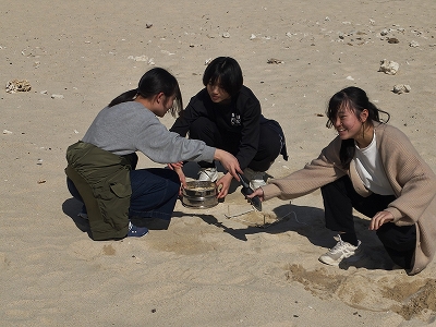 奄美大島生態学実習3日目の様子です。無事日程を終了しました。 奄美大島生態学実習は3日目の実習プログラム「マイクロプラスチック調査」「漂着ゴミ調査」を4か所の海岸で行いました。3日間の実習プログラムは全て、無事に終えることができました。 Post Views: 52 79回生 SSH 科学探究科 奄美大島実習2日目 皇后杯JFA 第47回全日本女子サッカー選手権大会 準々決勝 司会【放送部】 関連記事 【科学探究科】12/16(火)3,4限 1年生5組_理数セミナー(医学) 2025年12月17日 奄美大島実習2日目 2025年12月15日 奄美大島実習1日目 2025年12月15日 ビジネス探究科 2年生 類型別特別講義④ 2025年12月11日 ビジネス探究科 2年生 類型別特別講義③ 2025年11月17日 【科学探究科・生物部】第14回WPIサイエンスシンポジウムでのポスター発表と国立科学博物館での研修 2025年11月17日 【天文部・生物部】第49回兵庫県高等学校総合文化祭 自然科学部門 出場 2025年11月11日 坊ちゃん科学賞論文コンテスト発表会に参加 2025年11月10日
