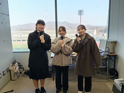 当日は現役部員1名と、OG2名の合計3名で担当し、今回も先輩たちの高いアナウンス力に良い刺激を受けました。