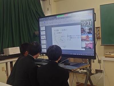 本校構内からオンライン形式での発表となりました。練習の成果もあり、質疑応答にも柔軟に対応することができました。また、この学生発表会には高校生だけでなく大学生の参加もあり、大学生の研究発表を聴くことができる貴重な機会にもなりました。