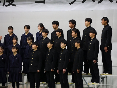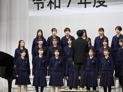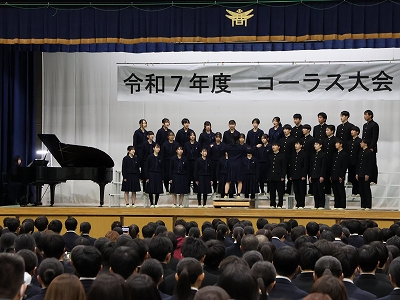 3月6日(金)、令和7年度コーラス大会を行いました。各クラスが課題曲と自由曲の2曲を歌い、互いに競い合いました。短い練習時間の中でしたが、どのクラスも完成度が高く、素晴らしい歌声を披露していました。