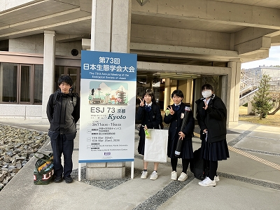 3月15日(日)、第73回日本生態学会大会ジュニアポスター発表が国立京都国際会館で行われ、科学探究科で生物部の1年生4名がポスター発表を行いました。また、発表を行うだけでなく、大学生や他校のポスター発表を聞く機会もあり、発表やポスター作成の方法を学ぶとともに、生態学に関する研究への視野を広げることができました。当日は「みんなのジュニア生態学講座」も開催され、生態学に関わる方々の研究内容や仕事内容についてのお話を聞くことができました。