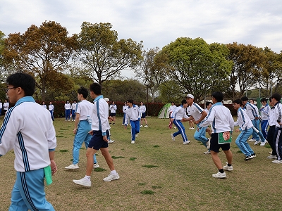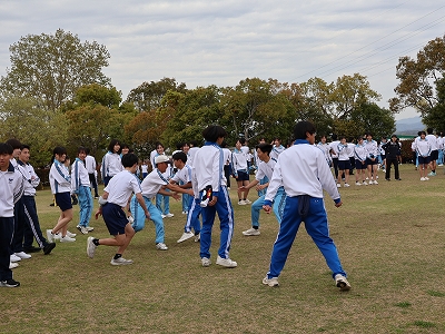 ひまわりの丘公園では、2・3年生が中心となって企画したプログラムに沿い、校歌や応援歌の歌唱をはじめ、しっぽ取りやクイズ大会、ダンス披露などを行いました。どの活動にも新入生は積極的に参加し、学年の垣根を越えた交流が見られ、終始和やかな雰囲気に包まれていました。