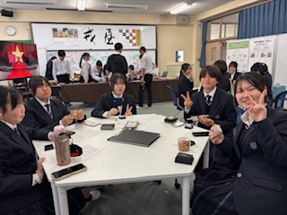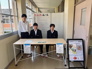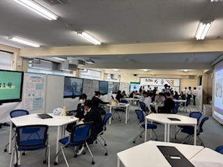 ビジネス探究科では、連携した事業所様と共同開発した商品や課題研究で取り上げたテーマに関わる商品の販売、課題研究の研究内容の展示やアンケート実施、そしてモルック体験なども行いました。