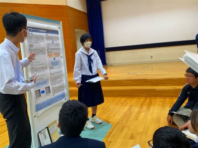 当日は、科学探究科1年生や外部の先生方にもご来場いただき、多くの質問や貴重なアドバイスを頂戴しました。今回の経験を今後の探究活動に生かしていきます