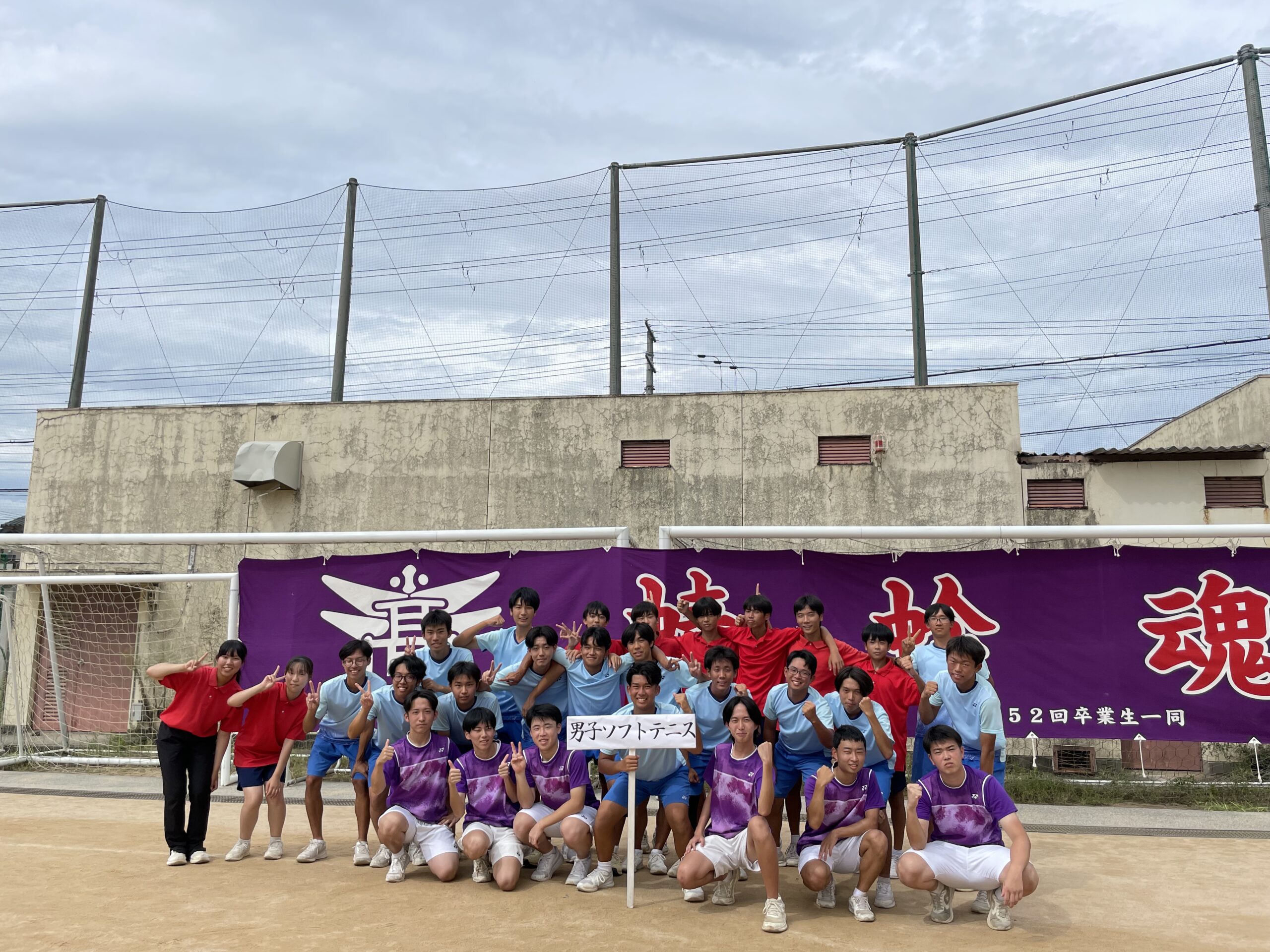 男子ソフトテニス部は経験者、初心者、先輩後輩関係なく仲良く混じって練習し、技術向上を目指しています。