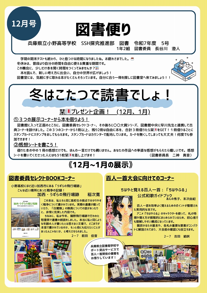小野高校1年間の主な新聞記事 (掲載許諾申請済み)