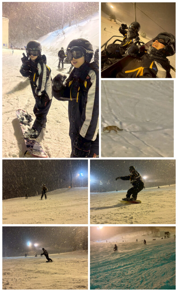 予定通り進んでいます。ナイタースキ・スノボーも自由に滑り楽しそうでした。