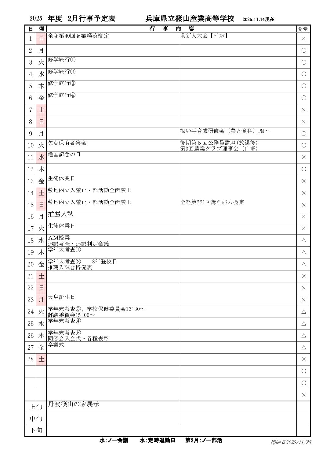 2月の行事予定
