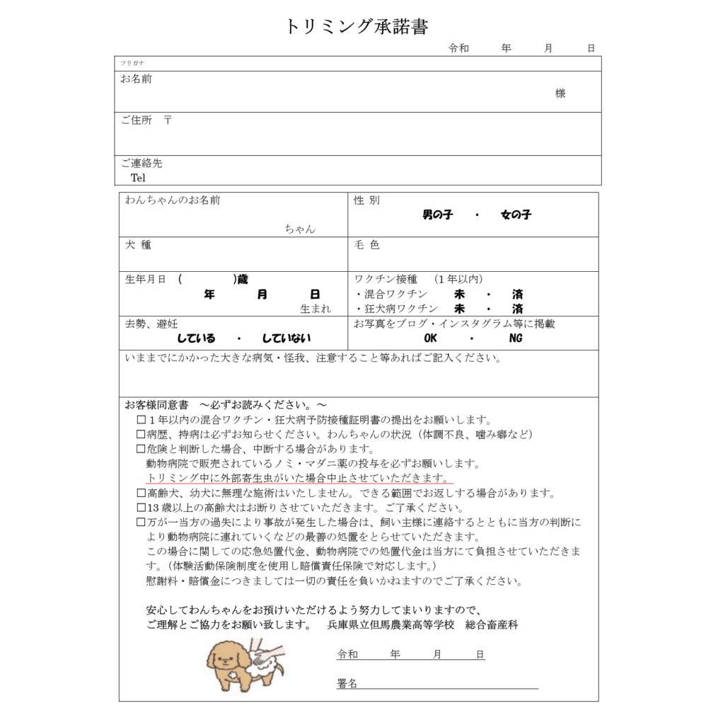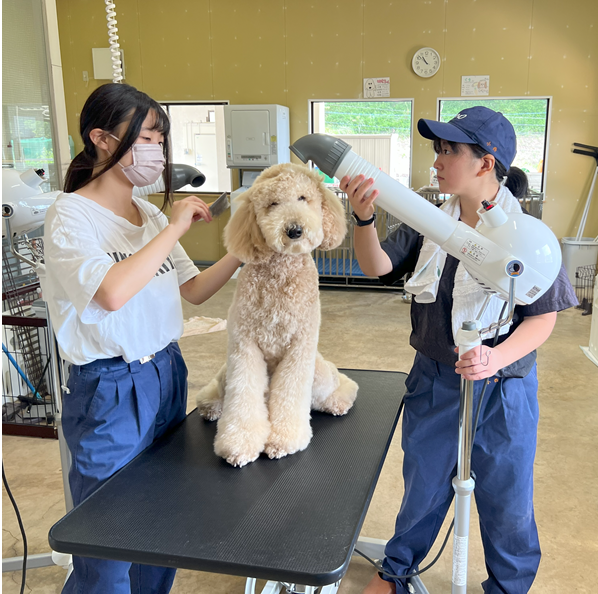 そこで、授業でマスターしたトリミング技術を活用し、地域のワンちゃんのために貢献します。