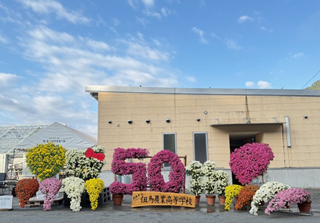 3年生課題研究の授業で懸崖菊班が仕上がった懸崖菊を設置にいきました。