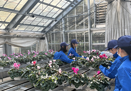 3年生にとっては最後のシクラメン栽培で1人100鉢栽培など責任を持って管理してきました。綺麗なシクラメンに仕上がっています。ぜひご来校ください。
