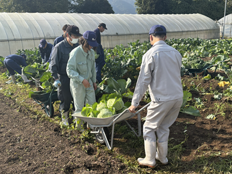 10月21日(火)1年みのりの食科『野菜』の授業で、ブロッコリーとキャベツの収穫を行いました。