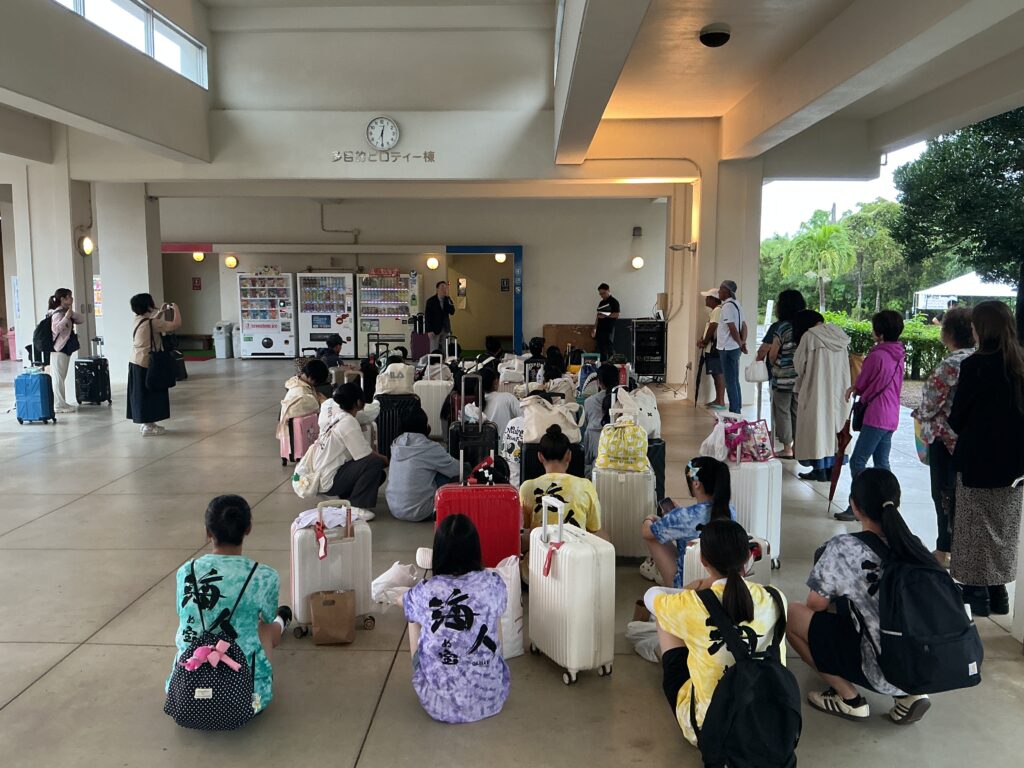 51回生 修学旅行④ 修学旅行2日目を迎えました天気は良いとまでは言えませんが、午前中は雨が降らずに活動でき各民家で沖縄の文化に触れました。海に釣りに出たり、三線を演奏したり、サーターアンダギーを作ったりとても楽しい半日を過ごしました。その後、退村式を行い午後からは雨の中でしたがマリン体験をしました。 バナナボートやマーブルに乗りスリル満点の体験をしたり、マリンクラフトでサンゴや貝殻を自分たちの作品を作り上げました。全員無事で2日目のホテルに到着しました。