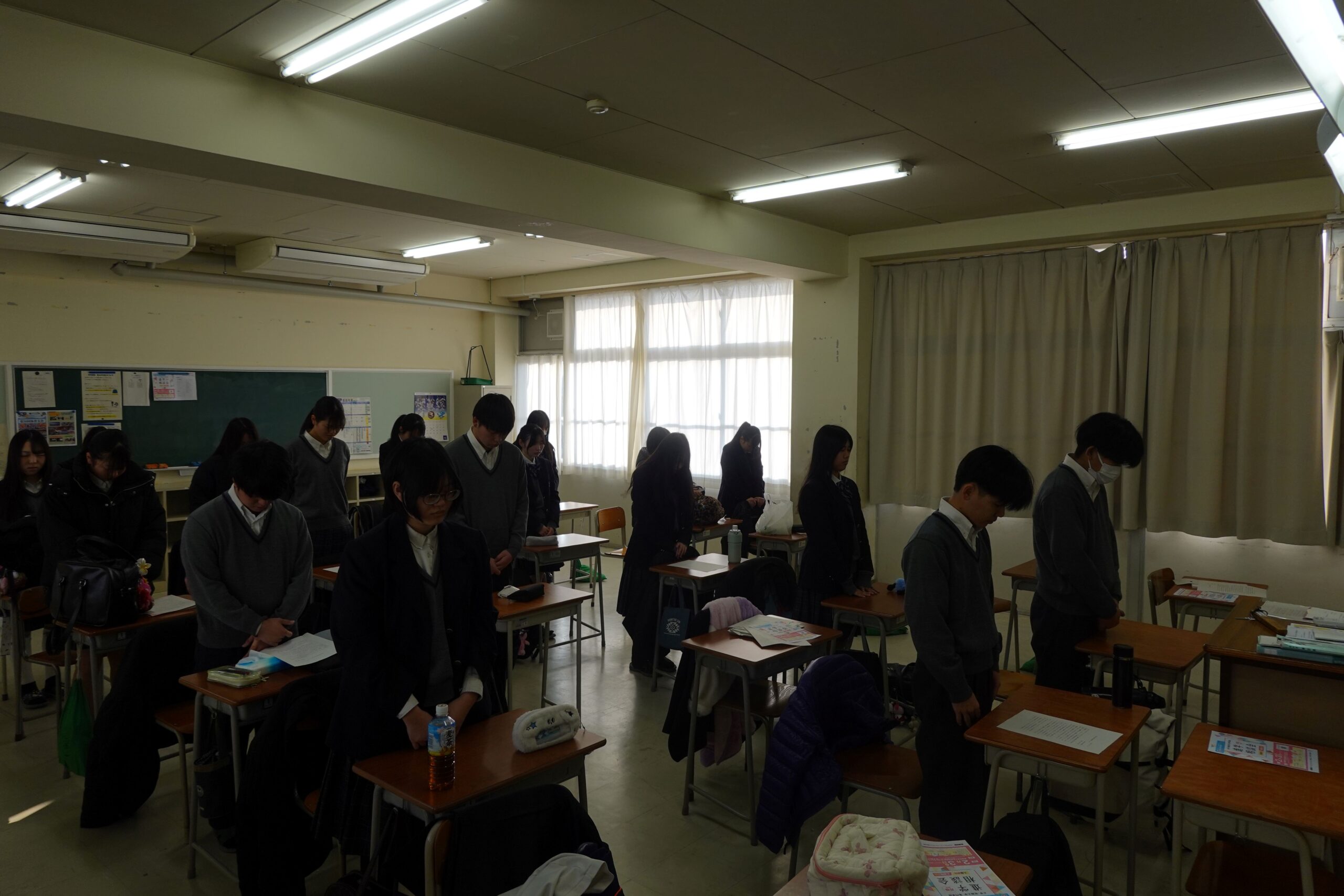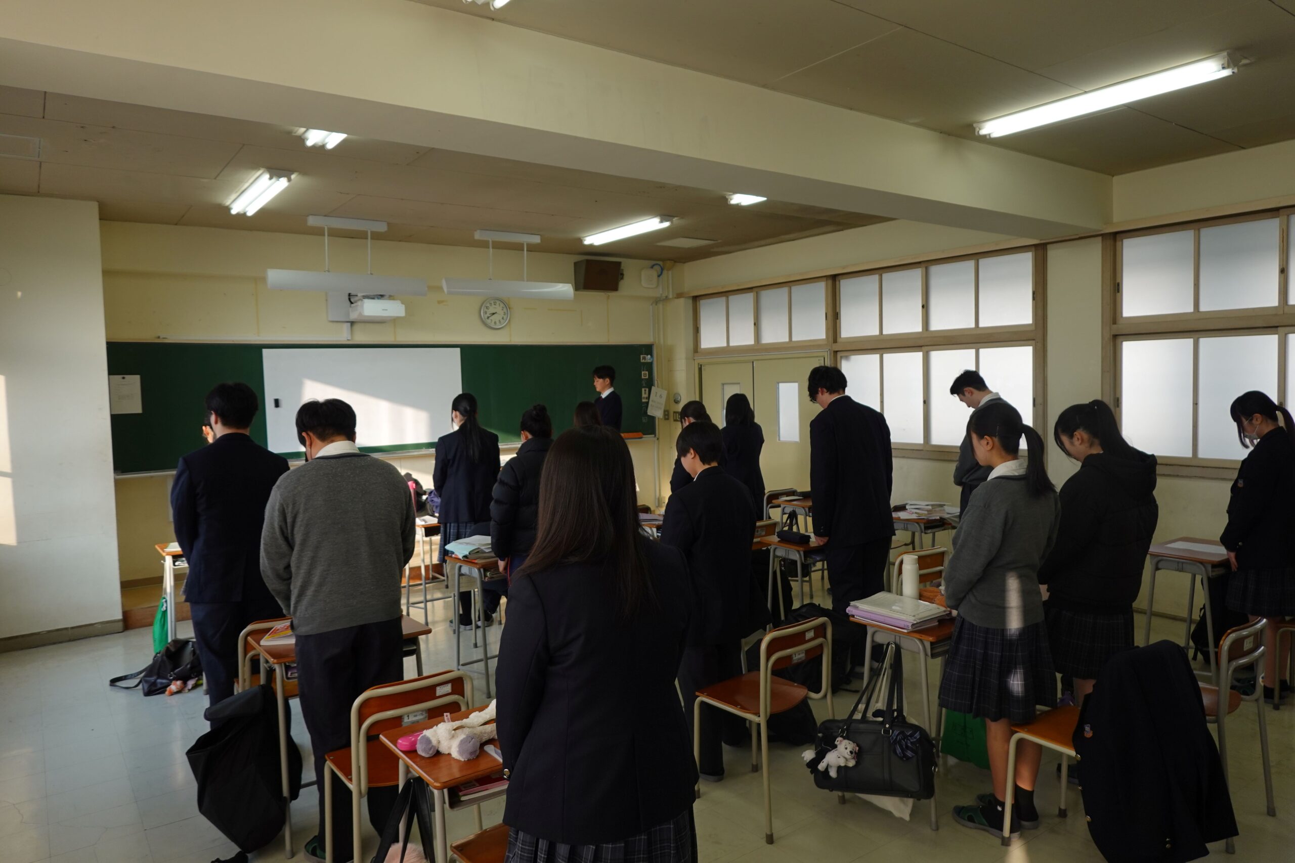 阪神淡路大震災追悼行事について 本日、阪神淡路大震災追悼行事を実施しました。 1995年(平成7年)1月17日に発生した「阪神淡路大震災」から、明日で31年となります。学校では、半旗を掲揚し、朝のSHR時に追悼行事を実施しました。濱田教頭先生から追悼文が読み上げられ、その後、全員で黙祷をしました。お亡くなりになられた方のご冥福を祈るとともに、震災の経験や教訓を「自分ごと」として捉え、防災と減災の重要性をいつまでも後生に伝えていくことができるよう取り組んでまいります。