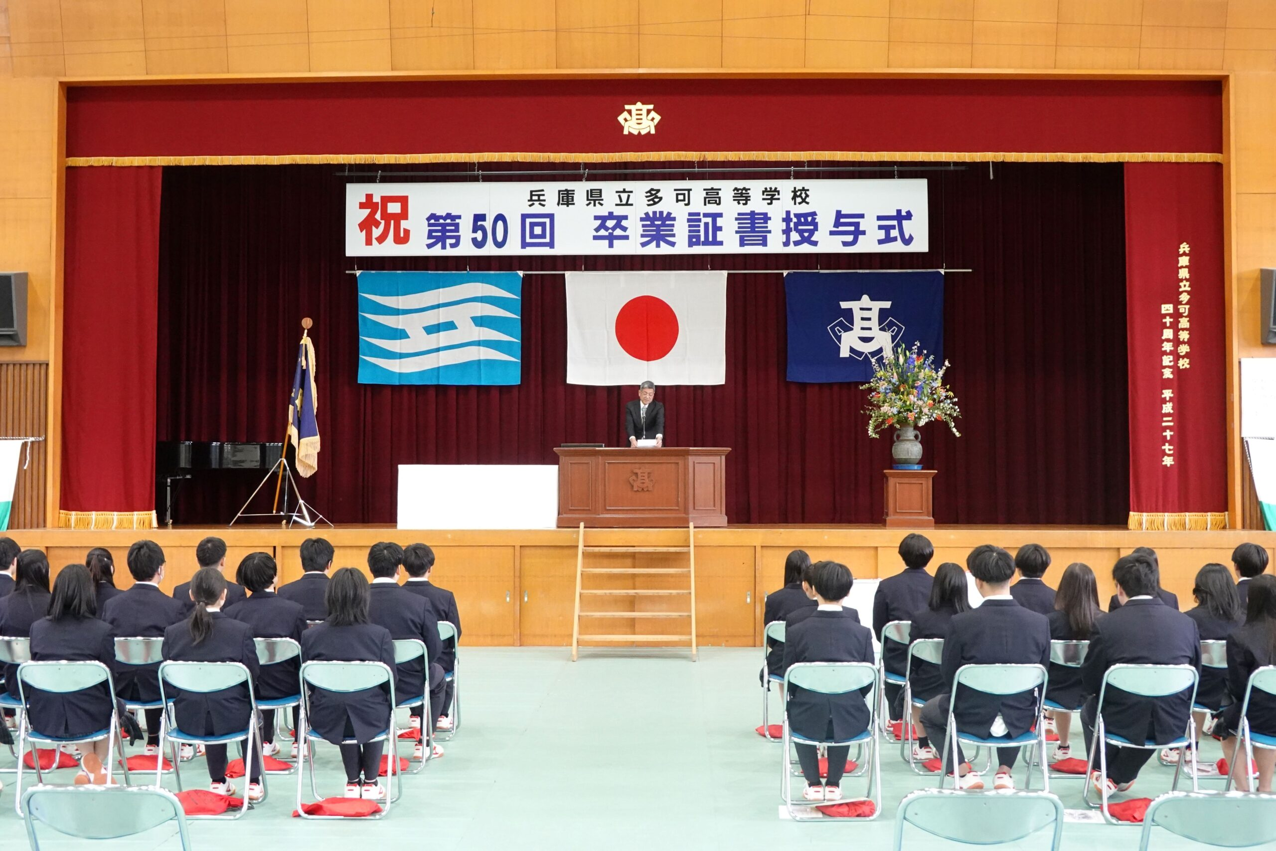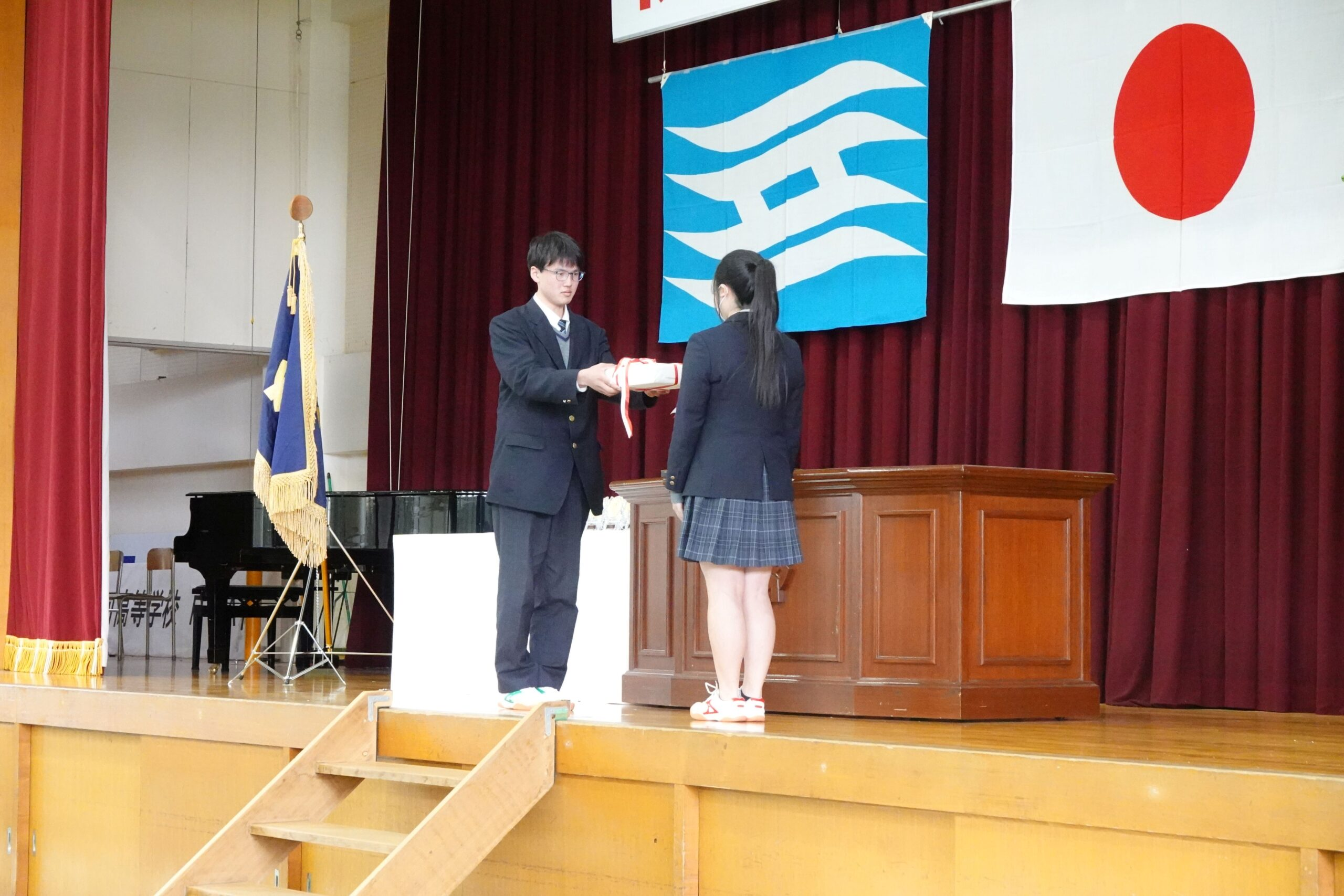 令和7年度卒業記念贈呈式並びに表彰式を実施しました 令和8年2月26日(木)に記念式典贈呈式並びに表彰式を実施しました。 「日日新賞」を 金賞9名、銀賞11名、銅賞9名が受賞しました。 また、商業関係の表彰を計5名が受賞しました。 最後に、卒業生48名が同窓会に入会しました。