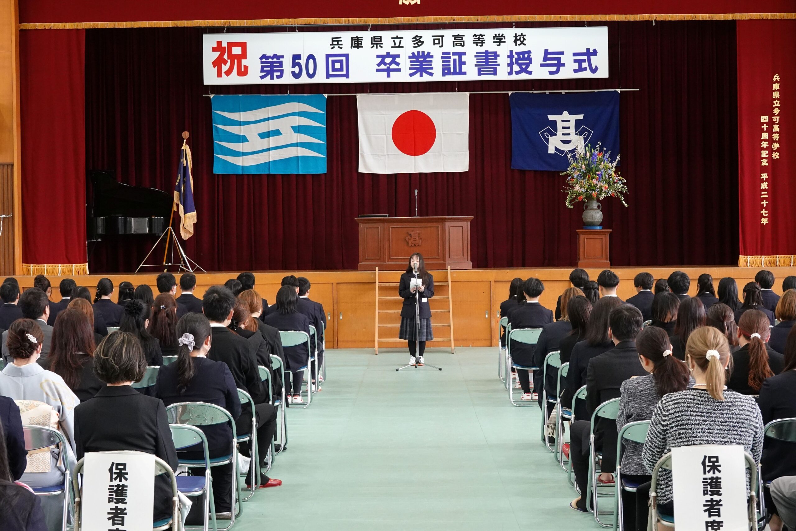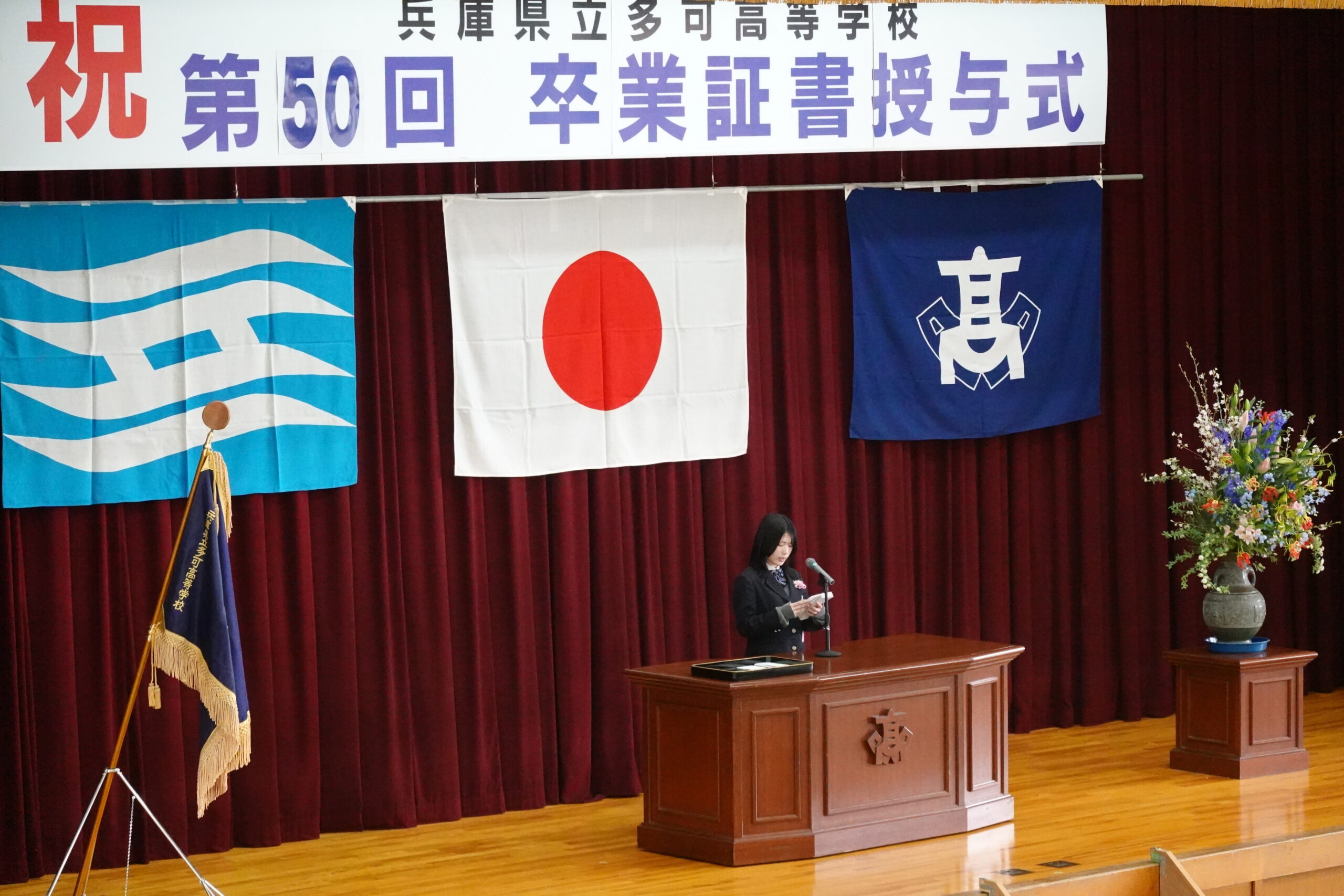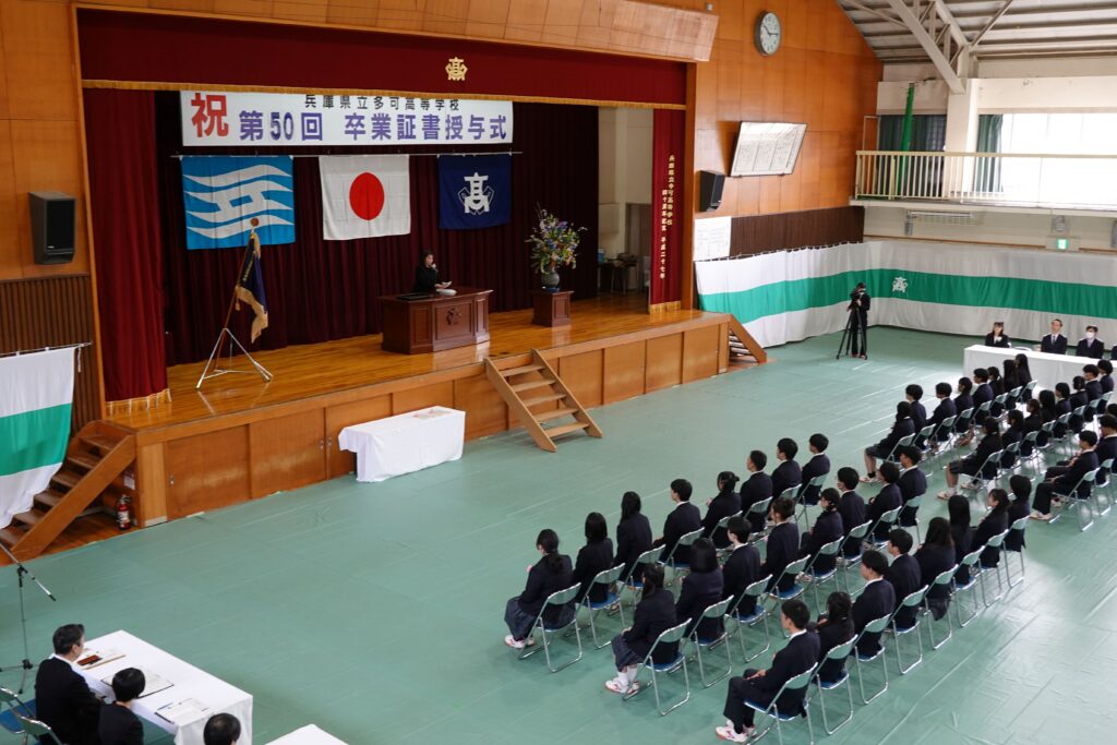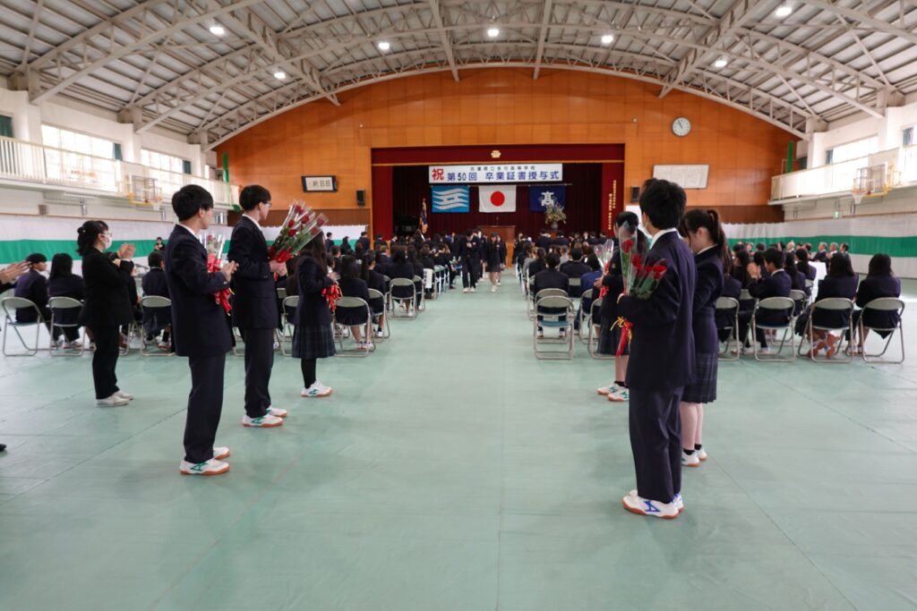 令和7年度 第50回卒業証書授与式を挙行しました 本日、第50回卒業証書授与式を多くのご来賓、保護者等のご臨席のもと実施しました。 第50回生48名は、卒業式を立派に終え、母校を巣立っていきました。 ご来賓および保護者等、そして教職員・在校生がそれを見送ることができました。