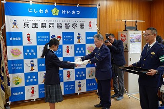 3月2日(月)に西脇警察署にて、今年度の『兵庫県警察自転車セーフティプロジェクト(チャリプロ)』の授賞式があり、行ってきました。