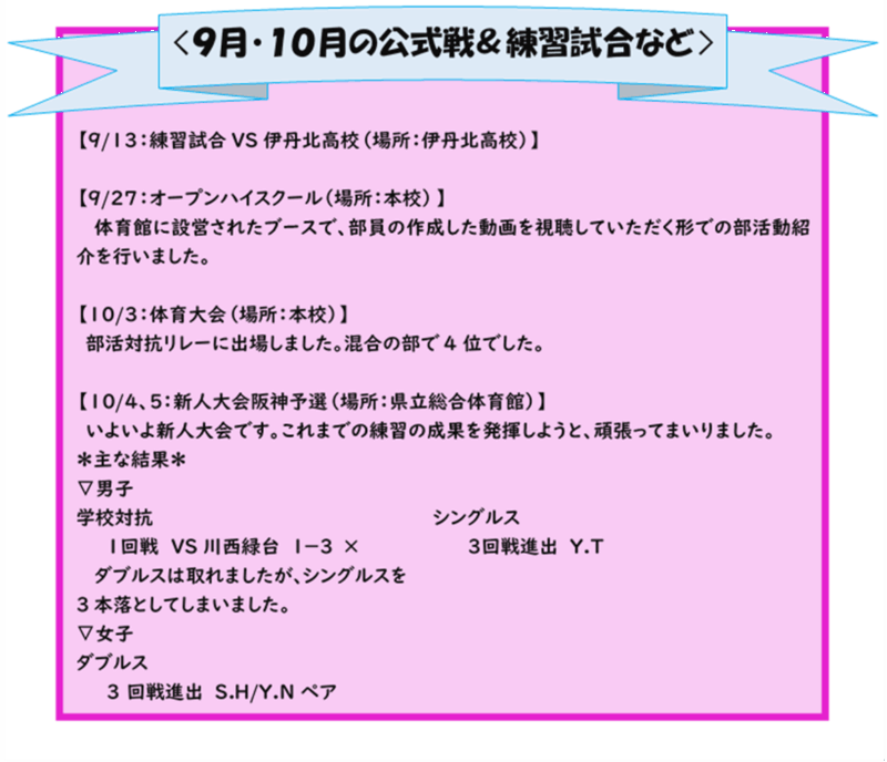卓球部 活動報告(9月・10月)