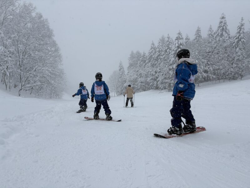 あいにくの天気でしたが、みるみるうちに上達し、山頂からの滑走を楽しむ生徒もいました。