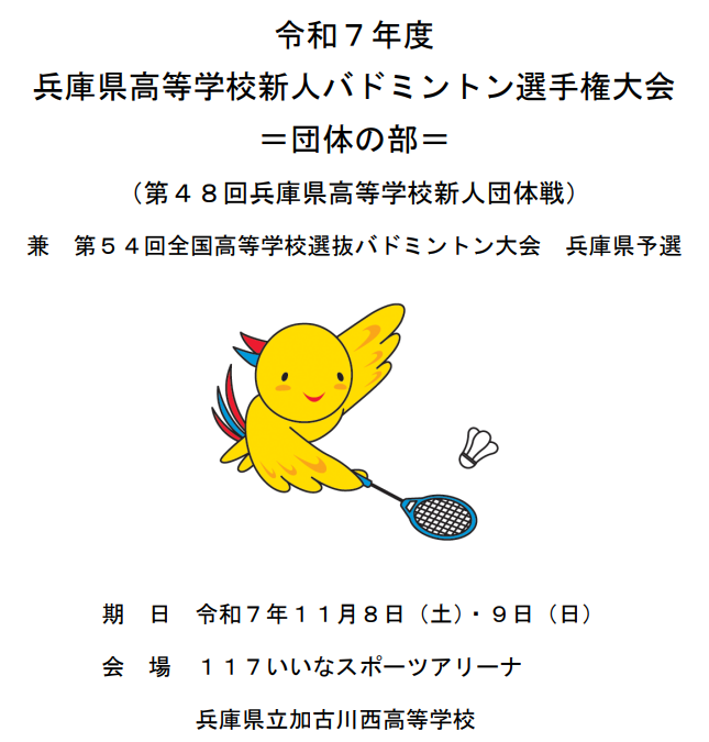 各地区予選の結果を受け、11月8~9日に県新人戦(団体)が加古川にて行われました。