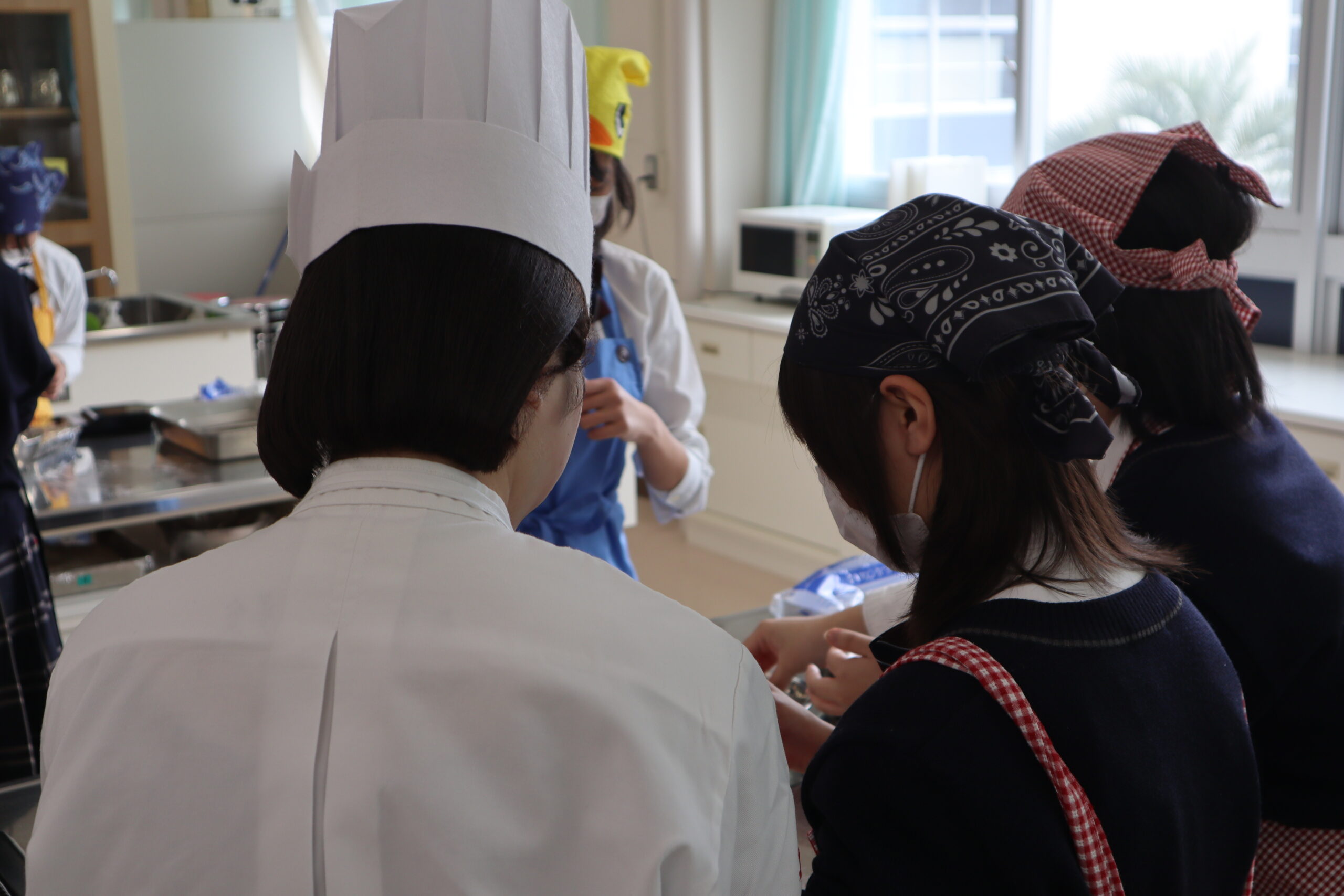 第5回 プロから学ぼう「パン作り」家庭科部 未分類 2026.03.09 家庭科部では、昨年に引き続き辻調理師専門学校の先生をお迎えして、メロンパンとカレーパンの作り方を教えていただきました。今回は実習だけでなく、発酵についての理論も教えていただきました。