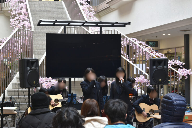 令和8年3月8日(日)に逆瀬川周辺で行われたグルメ&音楽イベント「宝塚音楽回廊」に、本校フォークソング部が出演しました!