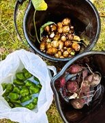 以前お知らせしたように、7月から西高の中庭で野菜を育てています。夏休みには茄子やトマトが実をつけていましたが、秋になり、いよいよ芋の収穫の季節です!放課後、これまで水やりのお手伝いをしてくれていた生徒たち6名が集まり、教員とともに芋掘りをし...