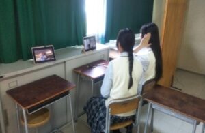 昨年度に引き続き、韓国のハニョン高校とオンライン交流を実施しました。ハニョン高校は私立の男子校で、昨年度は2回のオンラインでの交流と、手紙やプレゼントの交換などの交流をしました。3回目の今回は、放課後に本校2年生LACコースの希望者14名と、ハニョン高校の20名とで、1対1か1対2の少人数同士での交流ができました。グループで交流したときよりも英語をたくさん使えたという人もいました。最初は緊張した様子でしたが、「40分の時間があっという間に終わってしまいもっと繋がっていたかった」、との感想も聞かれました。