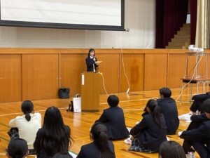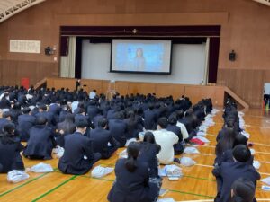 修学旅行委員長からの挨拶、校長先生のお話、旅行会社からの入国手続きの説明などがありました。