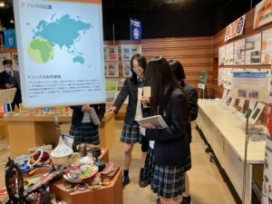 2年6組LACの生徒たちがJICA関西を訪問し、一日研修をしました。JICA関西の概要の説明を受けたあと、海外協力隊でエチオピアに派遣された齋藤さんのお話を聞き、昼食にはケニア料理のお弁当を食べて、午後は展示室を見学してから、ワークショップをしました。
