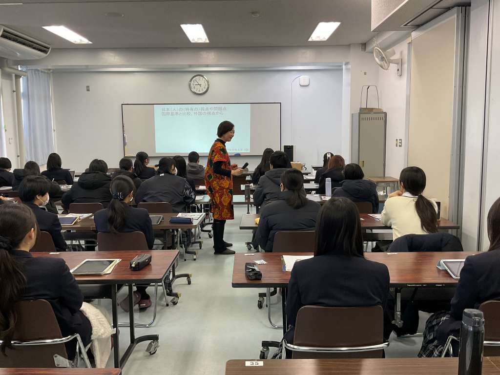 学校生活 12月18日(木)、神戸女学院大学国際学部グローバル・スタディーズ学科から米川正子教授が来校され、2年6組に特別講義をしてくださいました。