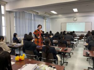 12月18日(木)、神戸女学院大学国際学部グローバル・スタディーズ学科から米川正子教授が来校され、2年6組に特別講義をしてくださいました。