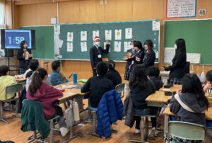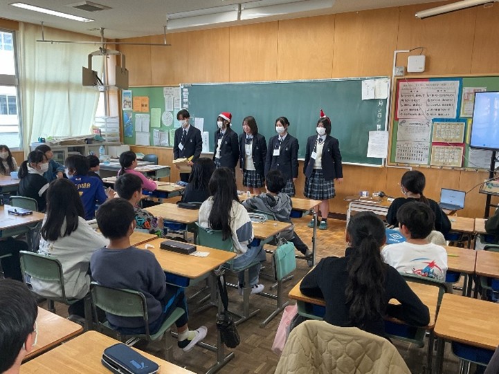 12月19日(金)、1年6組の生徒たちが宝塚第一小学校5年生へ英語出前授業を行いました。直前の練習では心配なグループもありましたが、いざ始まってみると、どのグループもとても上手に、楽しくできていて、笑顔がたくさん見られました。