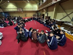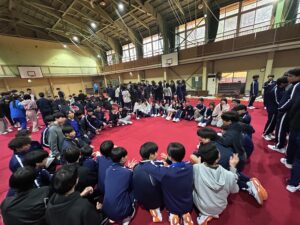 50回生オリエンテーション合宿2日目④ 50回生 X Facebook はてブ Pocket LINE コピー 2026.04.23 雨天のため、体育館で学年レクレーションを行いました。 クラスの枠を超えた関わりも生まれ、互いにコミュニケーションをとりながら、つながりを広げていく様子が見られました。
