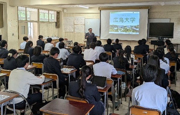 神戸市外国語大学、広島大学、鳥取大学、公立鳥取環境大学、愛媛大学の5大学が説明会に参加してくださいました。オンライン開催の大学もありましたが、そのなかでも双方向形式で生徒たちは挙手をしたり、隣の生徒と意見を出し合う機会もありました。