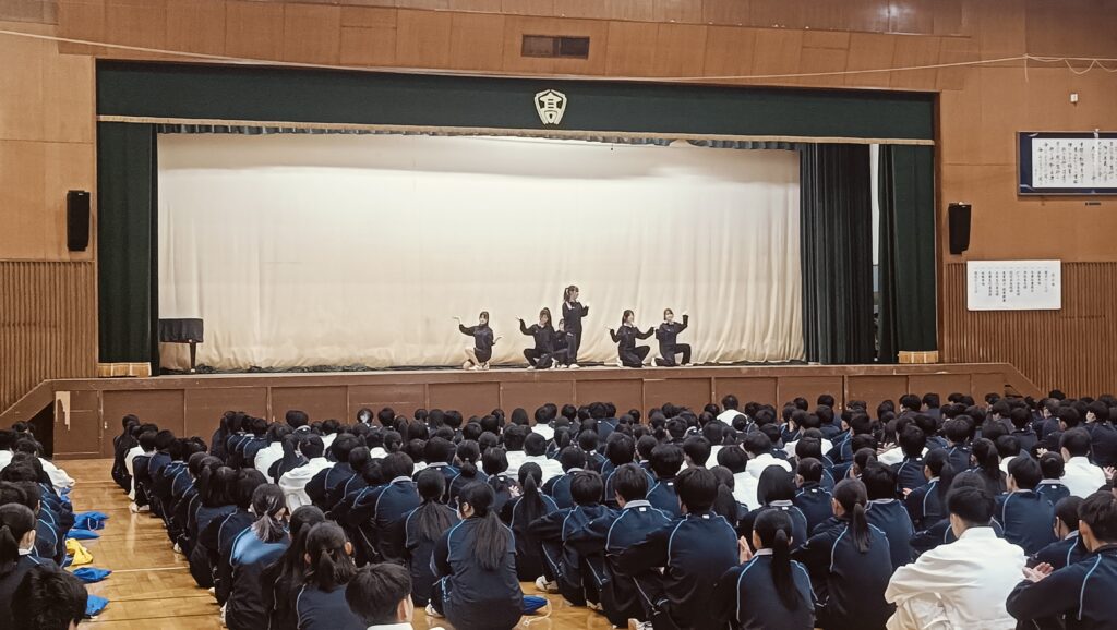 続いて、生徒会役員による部活動紹介を行い、各部の活動内容や魅力を生徒目線でお伝えしました。さらに、全国でも高い評価を受けるジャズバンド部が迫力ある演奏を披露しました。