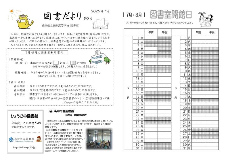 令和4年7月13日 図書だよりNO.4を発行しました。