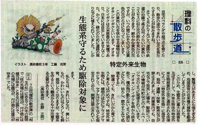いよいよ7月に入りました。タイトルにある神戸新聞日曜版の「理科の散歩道」ですが、3年生の生徒にイラストを描いてもらい先日掲載できました。それらを含めて理科に関する記事を不定期で出していきます。身近な現象に興味を持ってもらえればうれしいです。