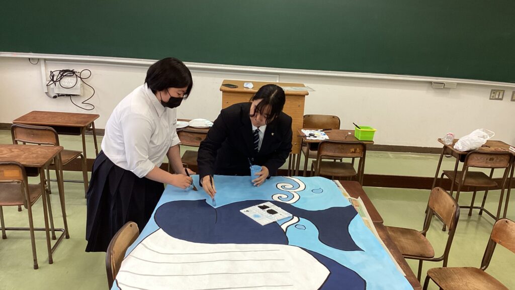 各クラスのクラス旗も完成まであとわずかです。文化祭に向けて、クラス一丸となって頑張ります。