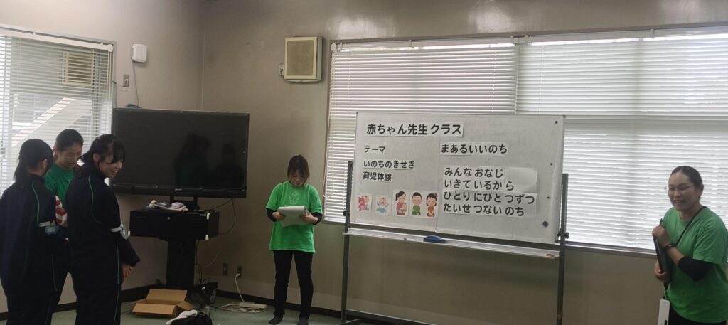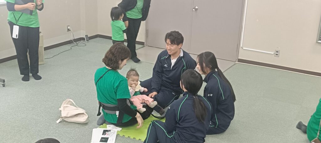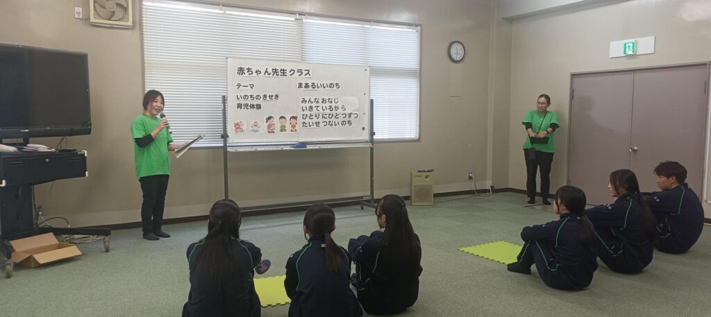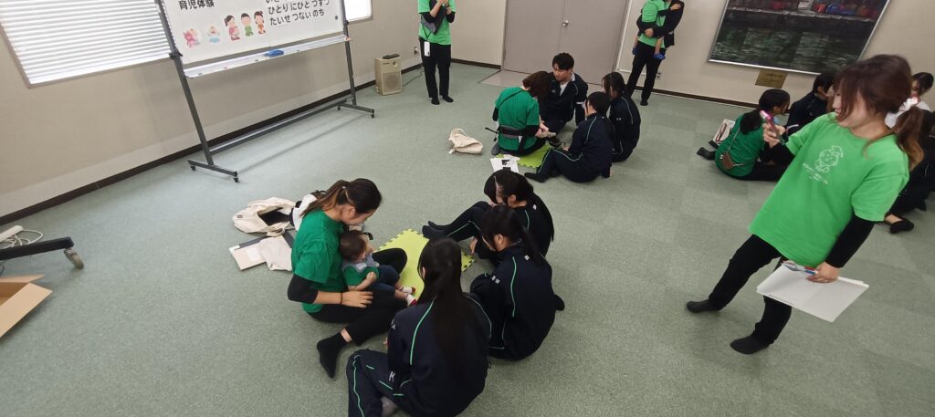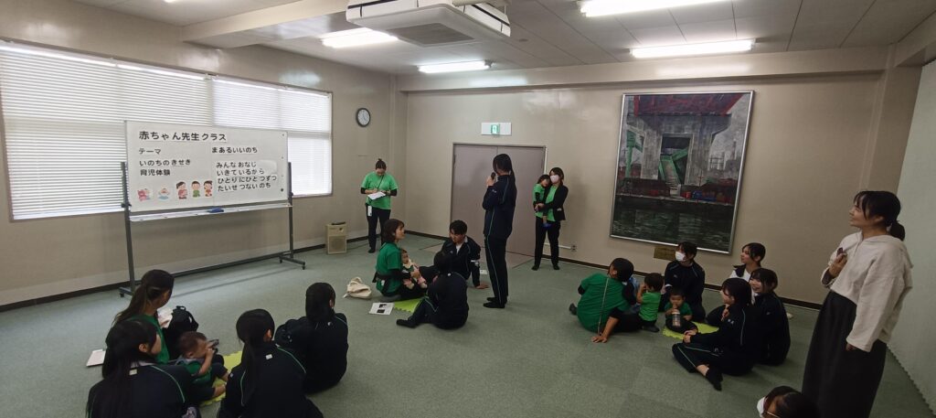 10月28日(火)3年生の保育基礎で赤ちゃん先生(NPO法人ママの働き方応援隊)の講義をうけました、赤ちゃんと母親が4組来ていただき、育児の喜びや大変さを教えていただきました。改めて、育児の大変さと自分たちもこれまで親に育ててもらったことに感謝の気持ちを持てました。大変有意義な体験となったと共に、かわいい赤ちゃんに癒やされました。