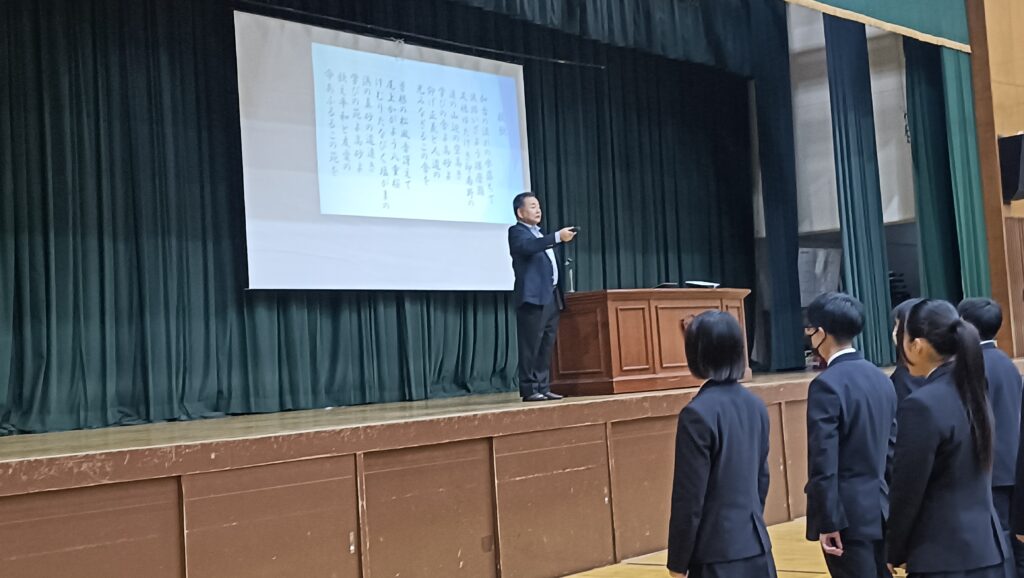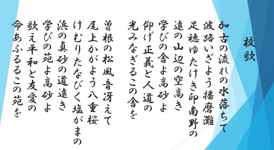 12月24日2学期終業式をおこないました。校長先生のお話の後、原田先生より校歌指導がありました。