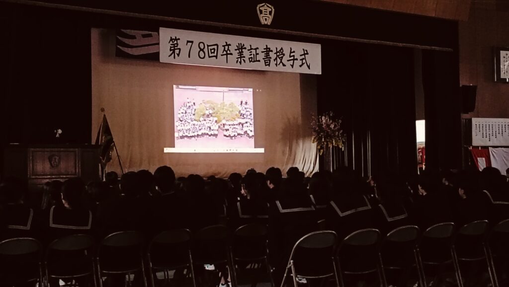 最後に3年生の先生方がつくられた、3年間を振り返る卒業ムービーが上映されいよいよ明日の卒業式に向けて気持ちもしんみりとしてきました。