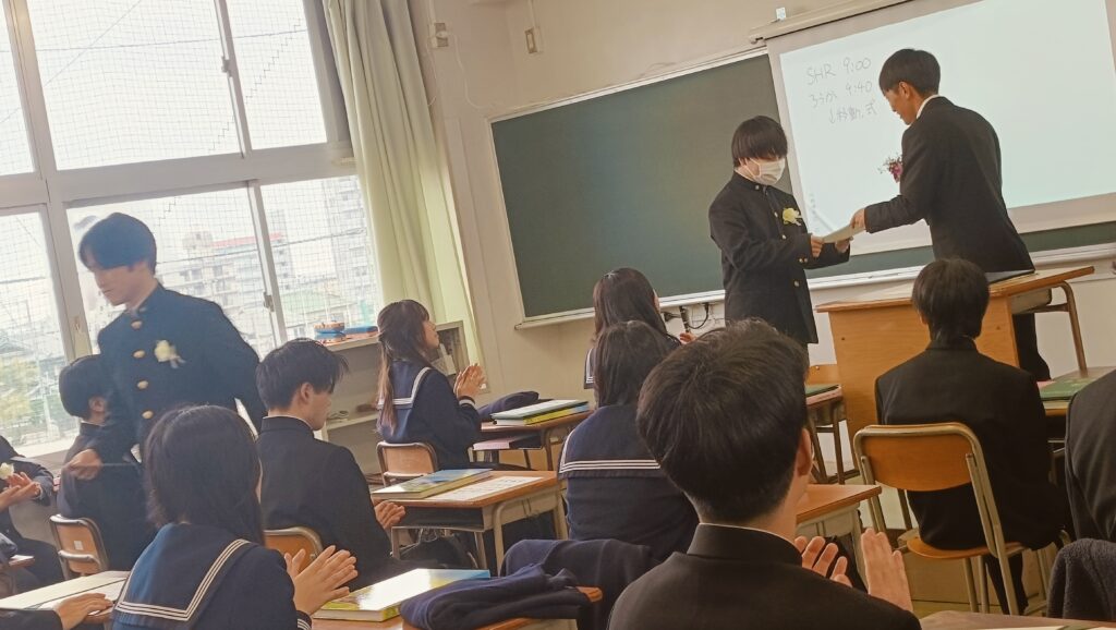 これからは、それぞれの道を歩むこととなりますが、高砂高校で共に学んだことを心にこれらのの人生を精一杯頑張ってほしいと思います。