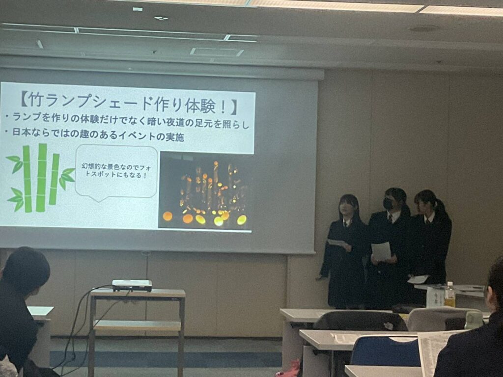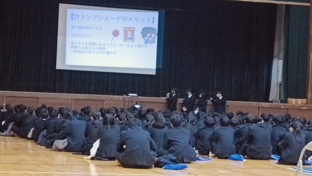 今回の発表で2組のチームAMATOの「夜空ジャック」と3組のチーム39の「竹ランプシェード」が2月11日に神戸国際会議場で行われる、兵庫県探究活動研究会に代表として出場します。
