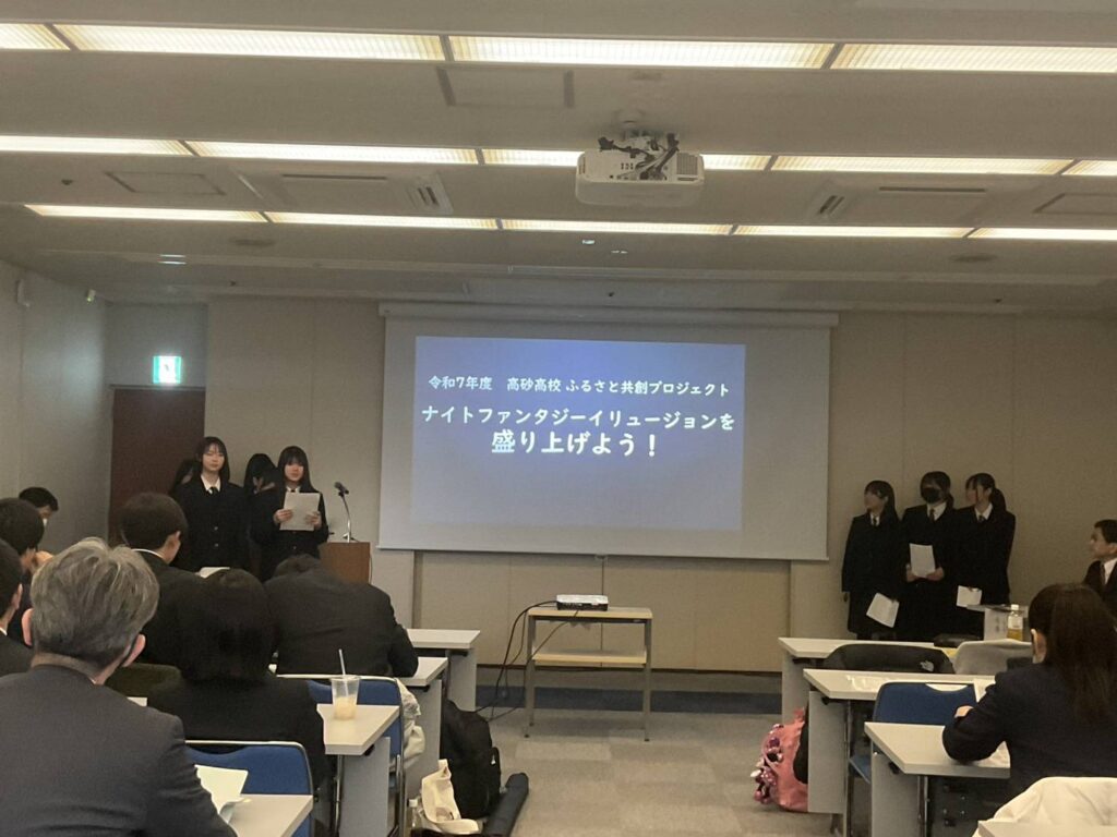 12月17日(水)ナイトファンタジーイリュージョン実行委員会の皆さんに対して、ナイトファンタジーイリュージョンを通じた高砂の課題解決にたいする提案の中間報告を行いました。実行委員会の皆さんからは、提案がより現実的に実現するような、また提案が一歩前に進むような助言をいただきました。次回以降、今回頂いた助言をもとに、2月の学年発表に向けて、チーム一丸となって探究していきます。