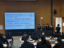発表はタブレットを用いて行いましたが、聞き手にわかりやすく伝える力はまだまだ未熟で、スライドの作り方、言葉での伝え方など課題は残りました。一方、看護援助について色々な視点で考えるには、患者さんの言動をよく観察することがとても重要であることに気づくことができ、これからの変化・成長が楽しみな発表になりました。