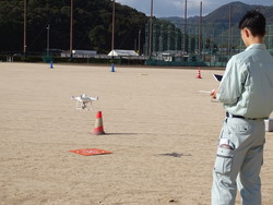 最後は、ドローンで上空から全員で集合写真を撮影しました。もしかすると、測量設計の仕事に興味を持った生徒が、来年測量業界への就職を希望するかもしれません。兵庫県測量設計業協会西播支部の皆様、毎年楽しい実習体験をありがとうございます。