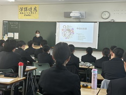 高校3年生が、臨床検査技師の先生から臨床検査の基礎知識や検査を受ける患者の看護に求められることなど、実際に取組まれている内容をもとにお話を聴かせていただきました。具体的には、採血や献血が安全で安心して行われるための工夫や、医師との情報共有・疑義照会など普段目にすることのない役割について知り、学びを深めることができました。